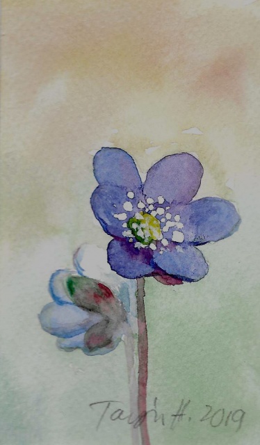 Sinivuokko akvarelli paperille 11×6 cm, 2018