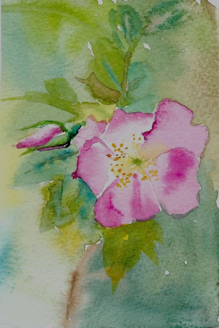 Villiruusu akvarelli paperille 14×9 cm, 2018